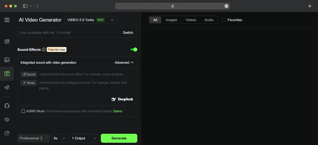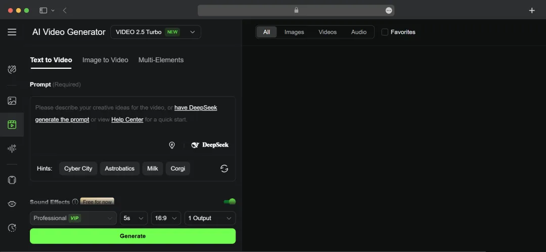 Step 4: Describe the Audio: In your prompt, describe the sound effects or background music you want to accompany your video. Being specific here will help the AI generate a more fitting soundscape.