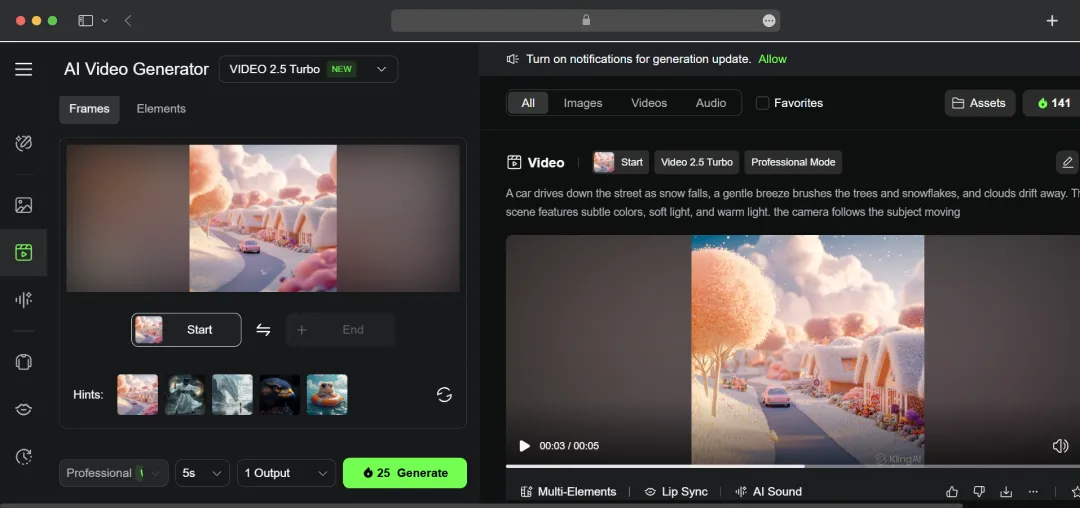 kling's Lab is the centerpiece of the platform, effectively functioning as both a creative workstation and an integrated asset library. I particularly liked its streamlined approach to creation; you can initiate a new project, whether an image or a video, simply by entering an idea. Its role as an asset library is just as vital, essential for managing larger projects and maintaining an efficient, professional workflow.
