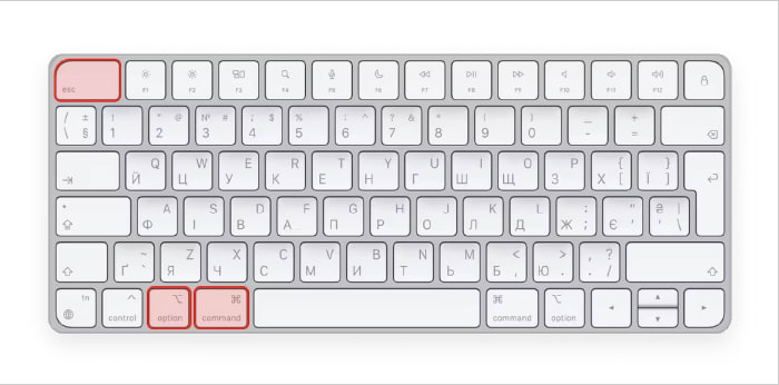 Step 1: Option + Command + Esc.