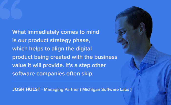 What immediately comes to mind is our product strategy phase, which helps to align the digital product being created with the business value it will provide. It’s a step other software companies often skip. Having this phase at the beginning of the project also helps to generate buy-in among stakeholders and provide benchmarks for the future.