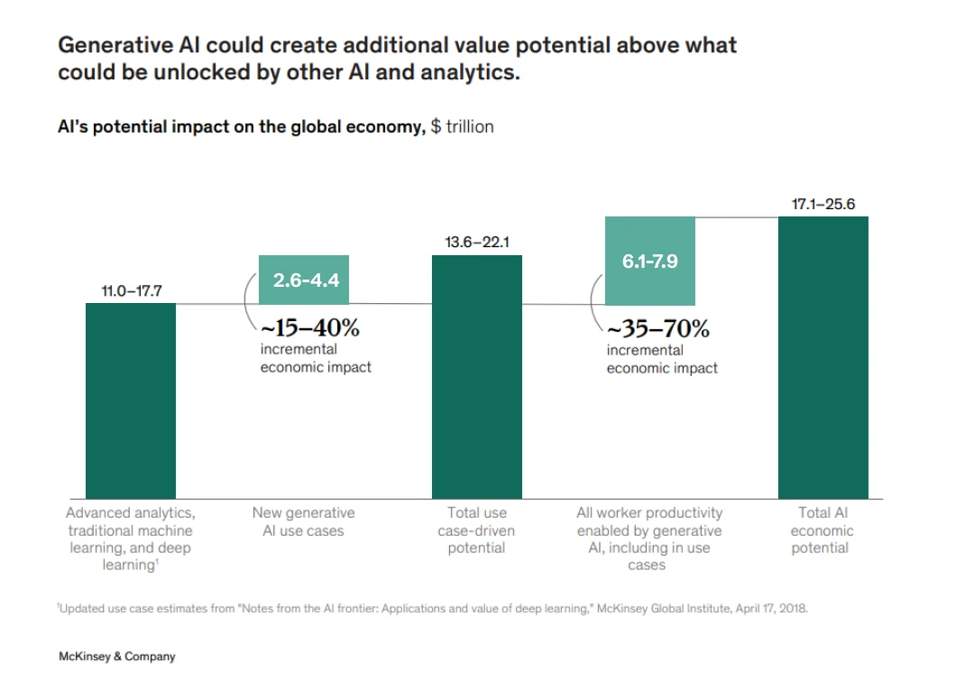Every week of delay is a week your competitors are learning, iterating, and capturing value. The McKinsey estimate of $4.4 trillion? Goldman Sachs suggests it could reach $7 trillion by 2030.