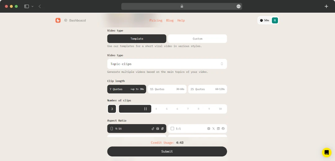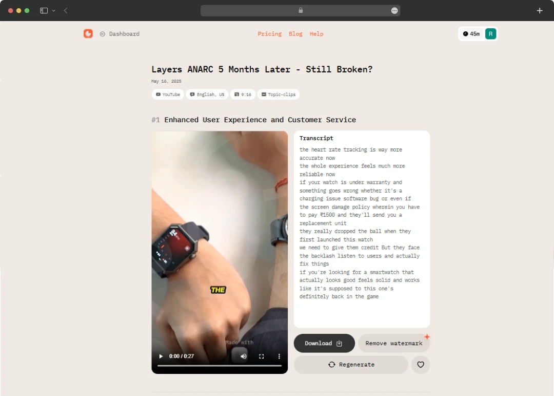 You can generate multiple clips from a single video in one go. You can also use the regeneration feature to create fresh clips with different prompts or styles without re-uploading. I loved being able to generate several clips at once and experiment with different prompts. The regeneration feature was especially handy for A/B testing content styles.