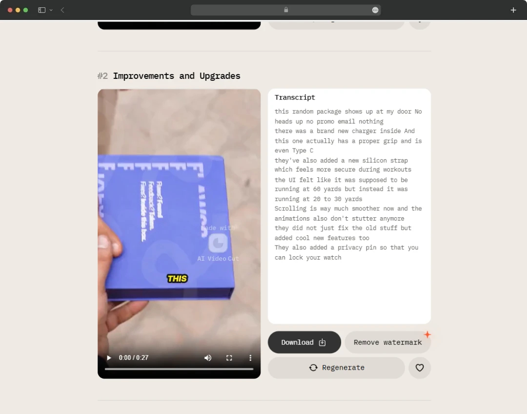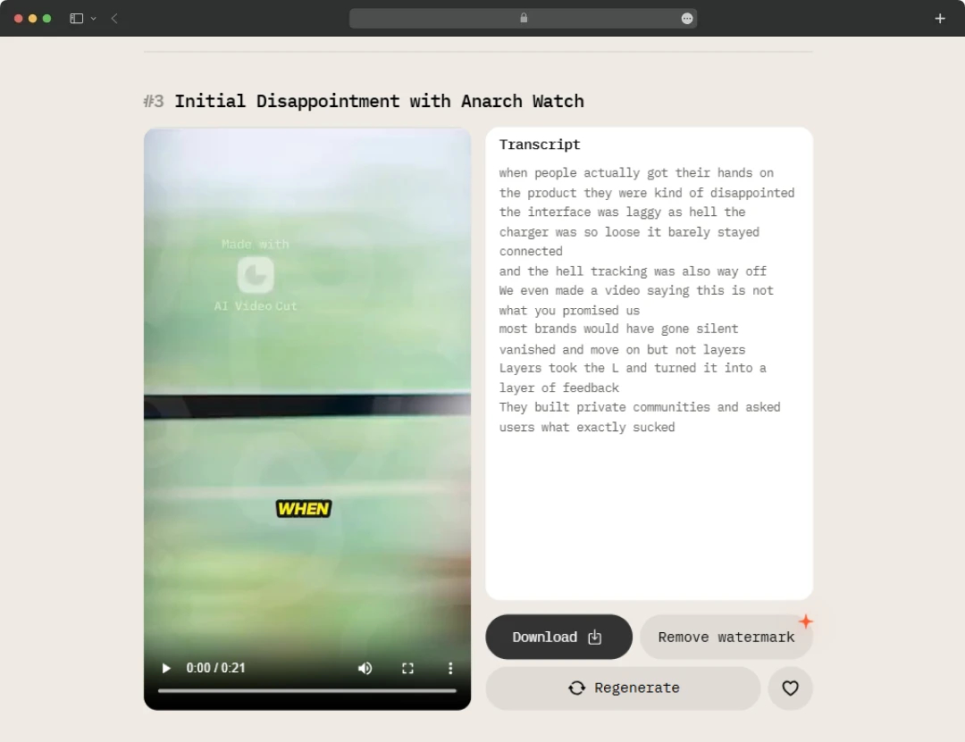 Here are the 3 clips generated using the AI Video Cut tool along with their accurate transcripts.