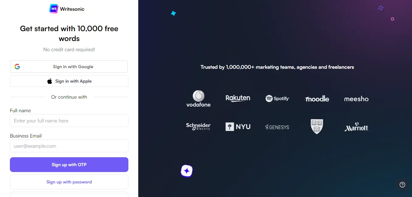 1. Go to https://writesonic.com/chat and click on Start Chatting