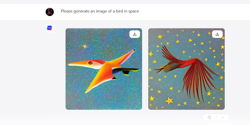 6. My second prompt asked the ChatSonic AI chatbot: “Please generate an image of a bird in space.” Here are the results I got-