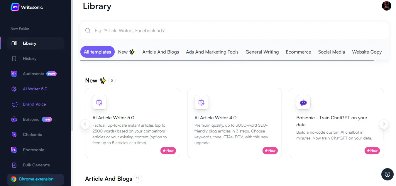 - Chatsonic provides custom templates tailored specifically to cater to the needs of your business.