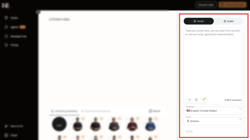 After selecting your avatar and title in Creative Reality Studio, the next step is to craft your script. You have the flexibility to either manually type out your script or utilize the innovative script generation feature provided by Creative Reality Studio. This feature simplifies the content creation process, allowing you to generate compelling narratives tailored to your project's needs with ease.