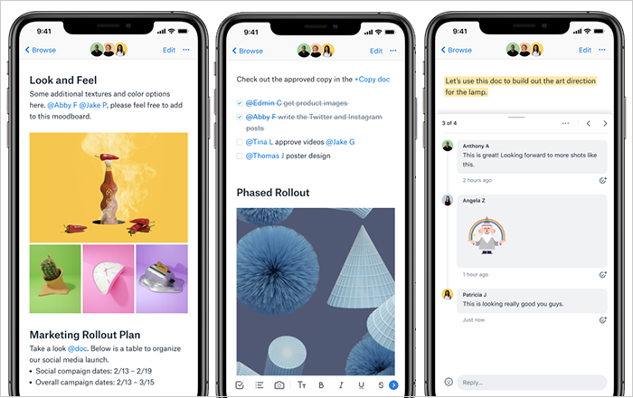 Creating and editing docs right from our smartphone was never that easy, but Dropbox paper can let you do it seamlessly. The note taking app also has an option to share the docs with the teammates. In case there are any comments on the doc, you will receive them in the notification center and reply as per the requirement.