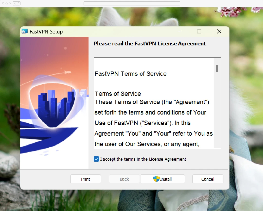 Open the setup file, accept the terms and conditions, and hit “Install.” FastVPN will handle the rest, making the installation process simple and hassle-free.