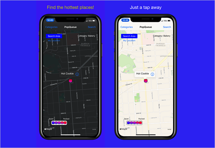 Once the app finds a place, the app marks it with different colors, which signifies how busy the place is. The blue-colored signifies a less busy place, and red color designates a super busy area. Thus you can easily make out which sites are buzzing with activity on weekends and which places are right for hushed for fine dines. This feature of the app is also handy in evaluating the time to process orders of a particular cafe or restaurant.